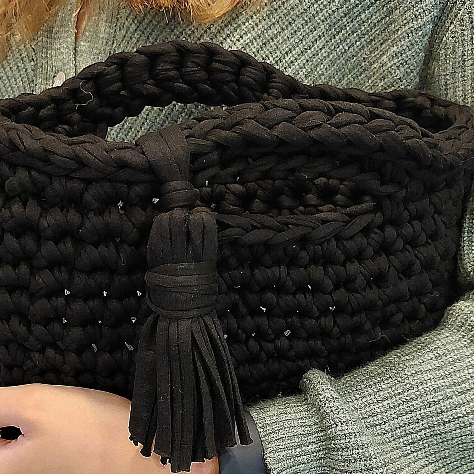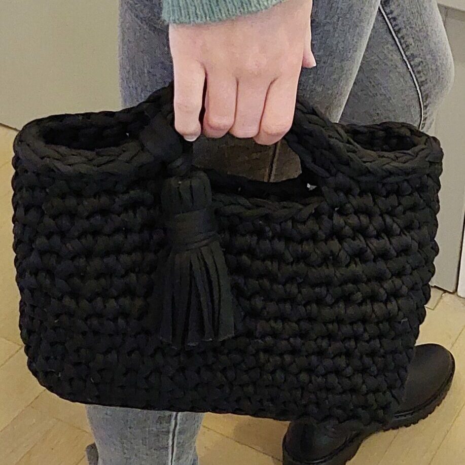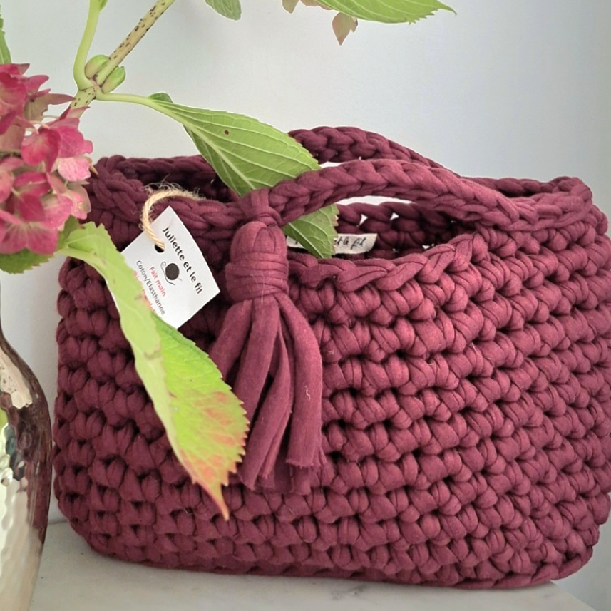 Sac en trapilho (fil recyclé issu des chutes de la confection) avec un pompon amovible