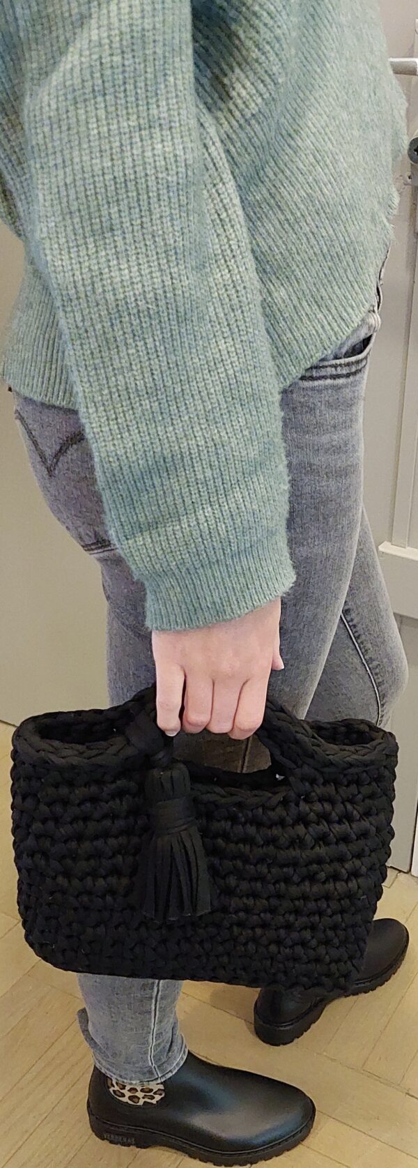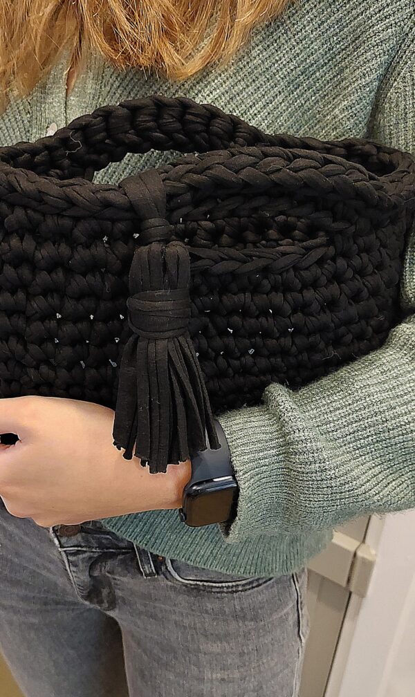 Sac en trapilho (fil recyclé issu des chutes de la confection) avec un pompon amovible